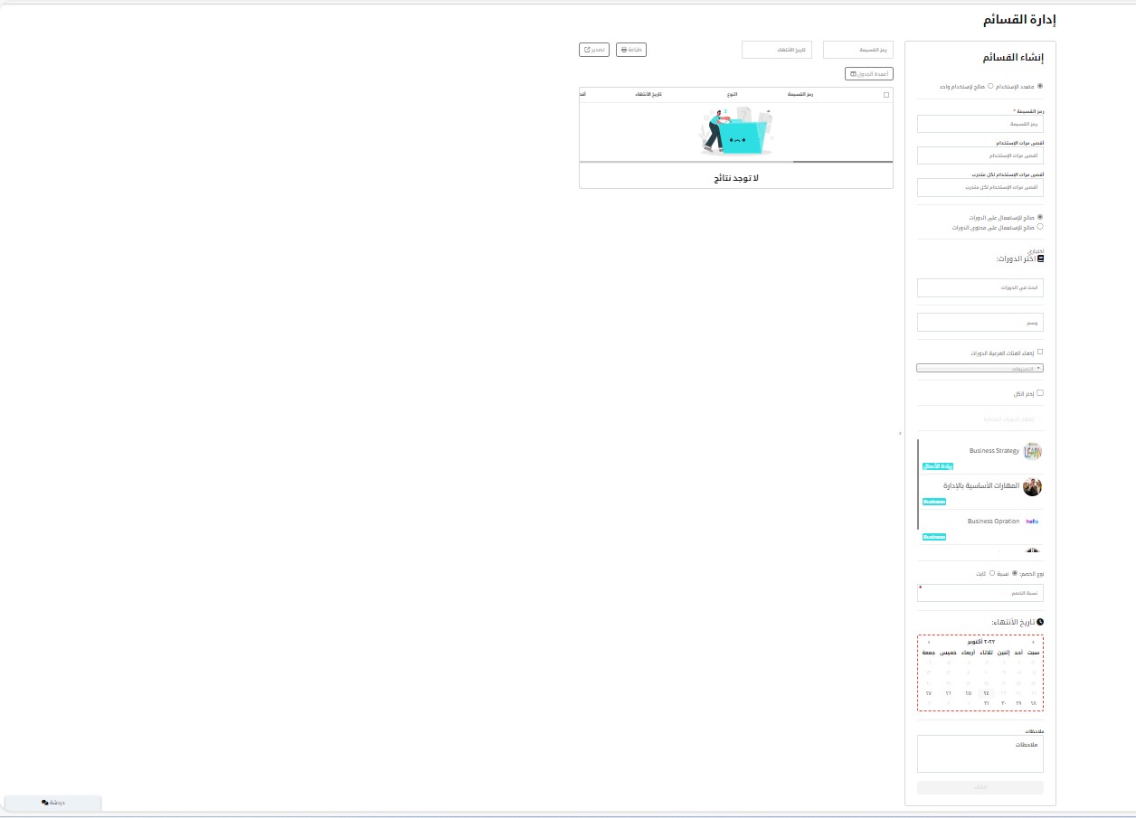 - حدد الدورات التي تسري عليها هذه القسيمة.