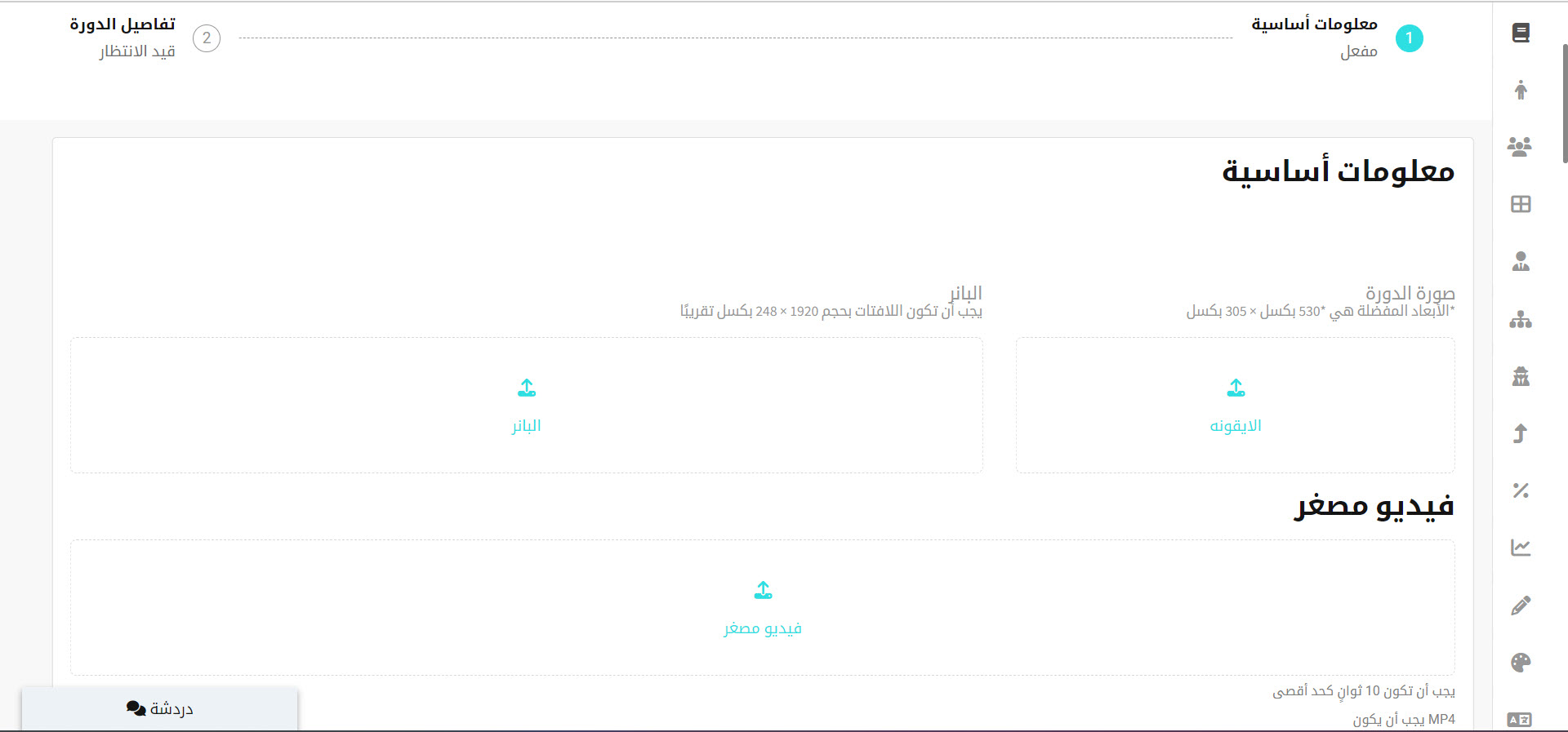 - قم بتحميل صورة للدورة حيث ستكون الصورة الرئيسة للدورة على صفحة الدورات.