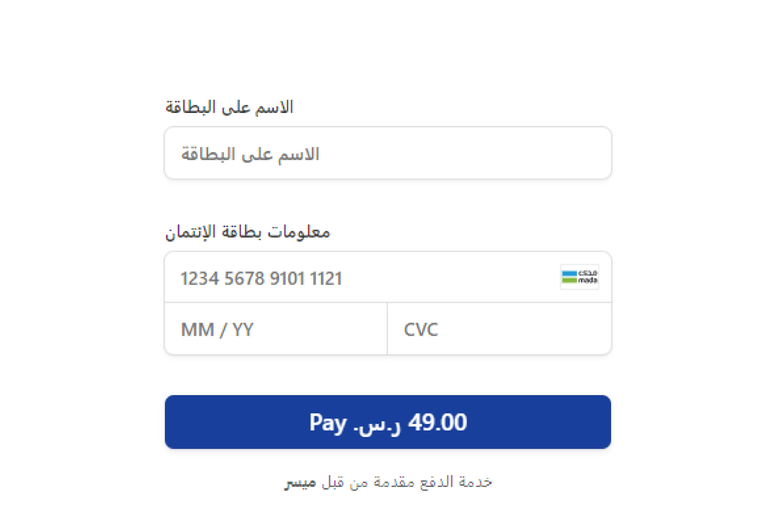 ٤ - أدخل اسمك على البطاقة، ومعلومات البطاقة، ثم اضغط على "الدفع".