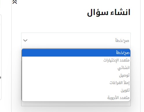- حدد نوع السؤال من القائمة المنسدلة.