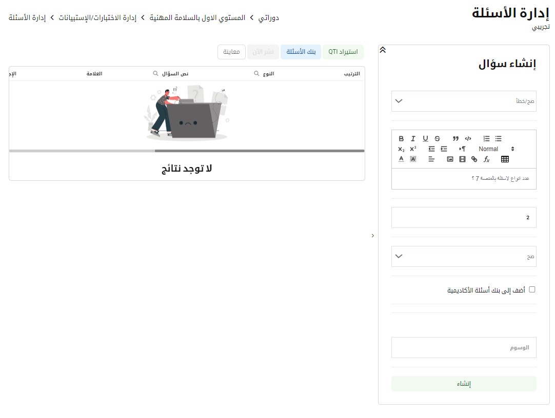 4. انقر لمعرفة كيفية استخدام بنوك الأسئلة وإضافة الأسئلة منها.