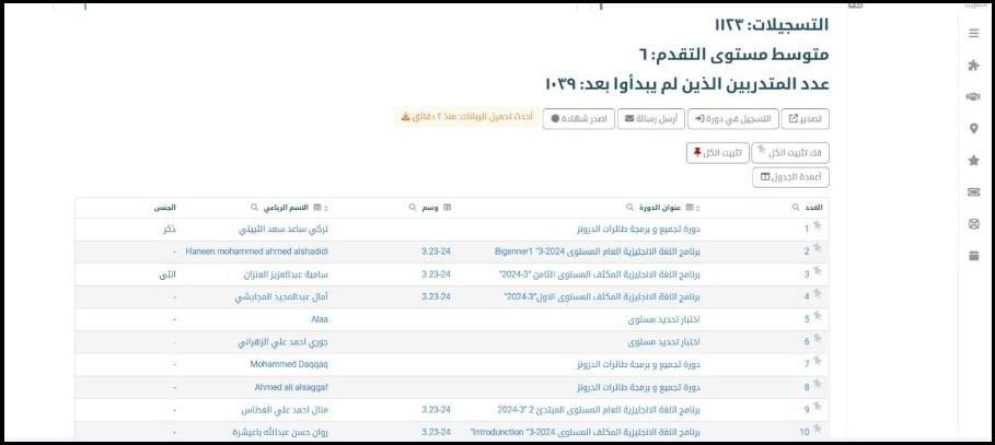 - يظهر جميع المتدربين المسجلين في الدورة إذا نقرت اسم هذه الدورة.