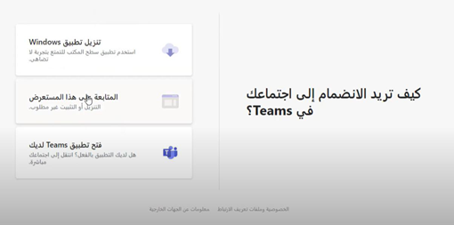 انقر على "متابعة على هذا المتصفح" لبدء الجلسة عبر الإنترنت باستخدام تطبيق الويب لـ MS Teams أو Zoom.