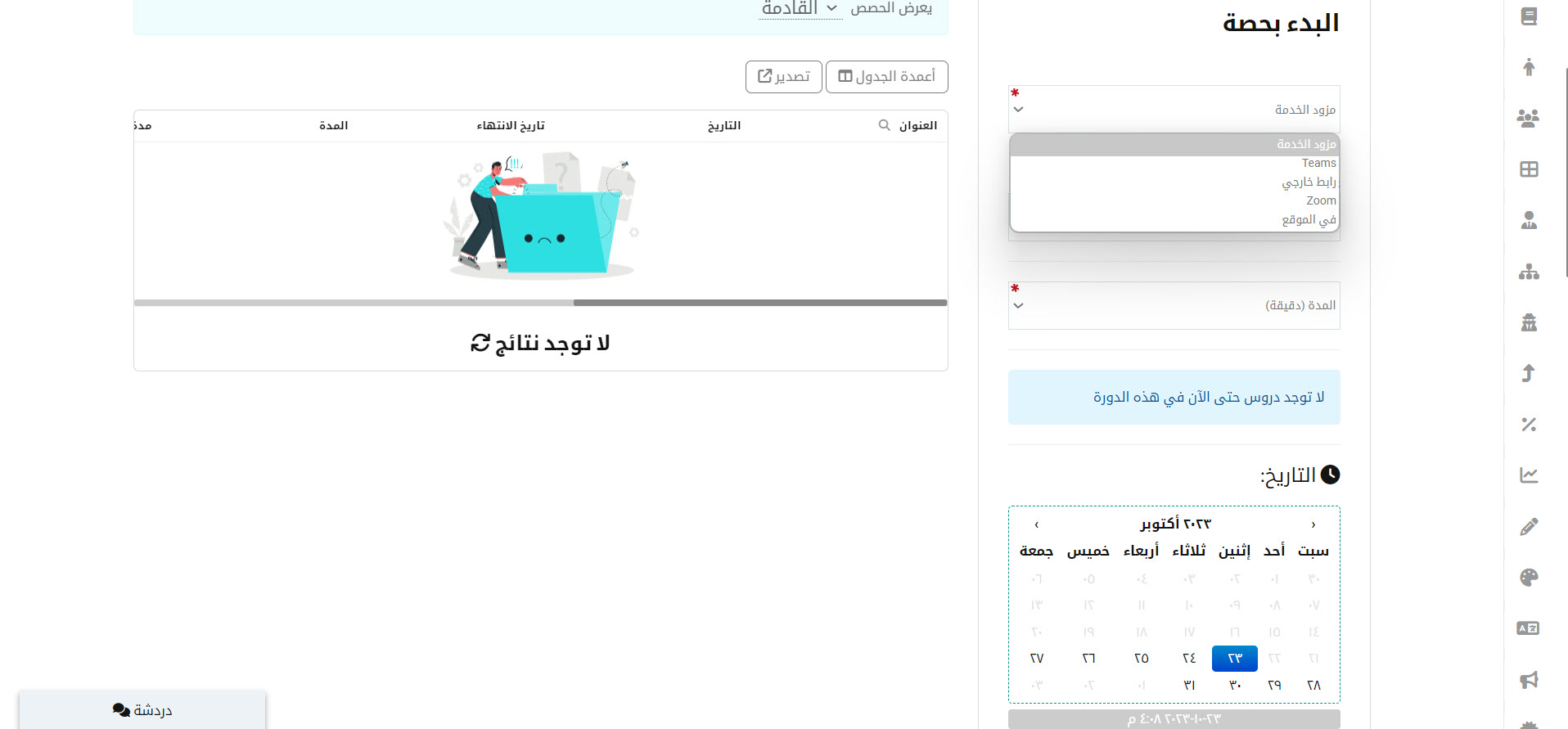 - اختر مزود الخدمة. (Teams – Zoom – في الموقع)