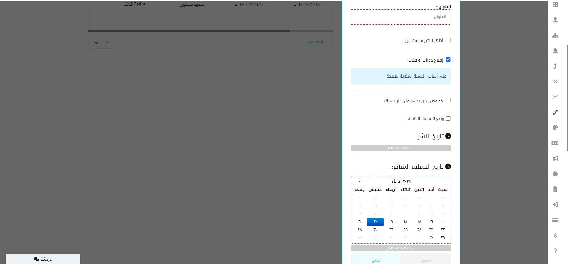 - حدد تاريخ التسليم المتأخر للاختبار.