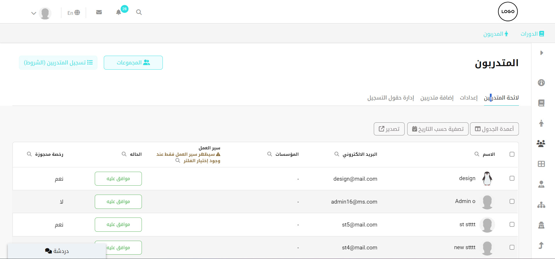 - انقر تبويب المتدربون من الشريط الجانبي.