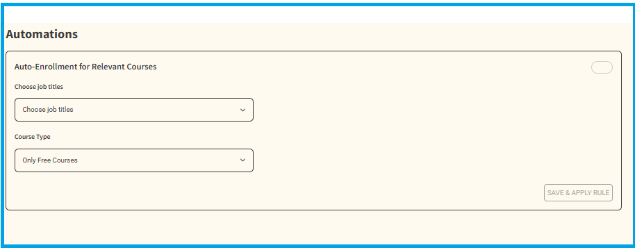 The Auto Enrollment feature is specifically designed to help you automatically assign relevant courses to users based on their job titles. By setting up auto-enrollment rules, you can ensure that employees, managers, or other user groups are instantly and consistently enrolled in the training programs and courses that are most applicable to them—whether free, paid, or both.