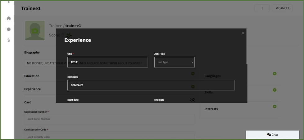 3- Add your experience, the title, and the job type, then the company name in the corresponding field.